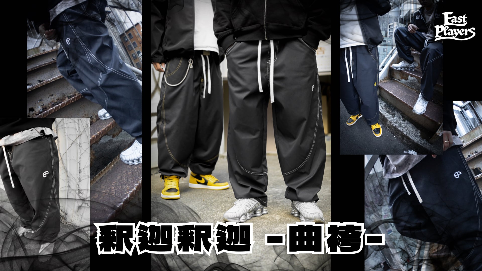 釈迦釈迦 -曲袴- 【黒&白】(CURVE PANTS black&white)